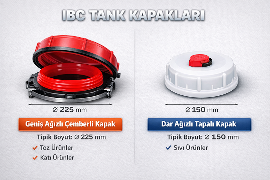 IBC tanklarda kapaklar temel olarak iki ana kategoriye ayrılır. Her birinin kullanım amacı ve sunduğu avantajlar farklıdır: