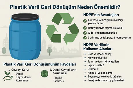 Blog8 Ağustos 2025Uygun Fiyatlı, Güvenli ve Çevreci: Geri Dönüştürülmüş HDPE ile Üretilmiş 220 LT Çemberli Bidon – Varil